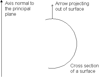 Si vous créez une surface de dépouille à partir des surfaces ou de solides, une flèche est projetée depuis les surfaces. Elle est parallèle à l'axe normal au plan principal et est utilisée pour calculer où les courbes de dépouille se trouvent sur les surfaces.