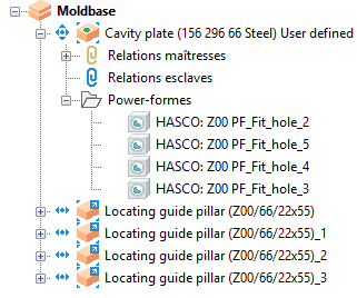 Une nouvelle branche est ajoutée à l'arborescence d'assemblage. L'état de la power-forme est indiqué par l'icône affichée à côté de la forme :