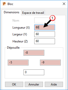 La boite de dialogue pour éditer les primitives sélectionnées appropriées est affichée, par exemple, la boite de dialogue Bloc.