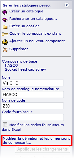 - Créez un catalogue perso appelé XXXX qui contient l'élément Hasco Vis CHC (Z30).
