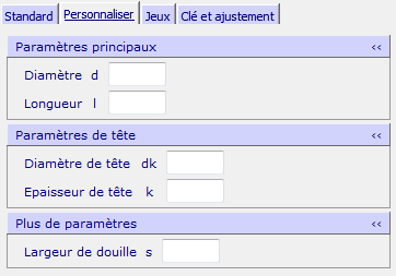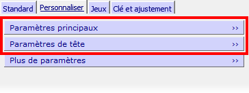 - Cliquez sur l'onglet Perso. Les groupes Paramètres principaux et Paramètres de tête sont affichés.