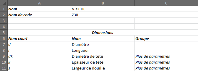 - Cette technique est utile pour une plaque, vous pouvez grouper les paramètres liés aux vis de fixation séparément de ceux liés aux trous de colonnes.