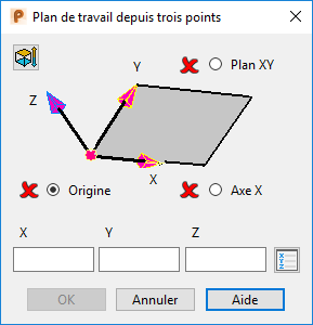 Un plan de travail est affiché dans la boite de dialogue avec une option de sélection pour trois points :