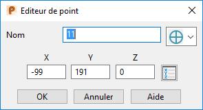 X, Y, Z — Entrez les coordonnées du point sélectionné.