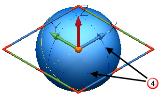 Chaque surface primitive possède des poignées similaires aux poignées graphiques d'un plan de travail comme montré ci-dessous. D'autres poignées graphiques qui apparaissent sont unique à chaque primitive.