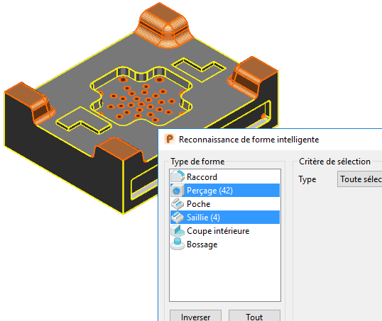 - Cliquez sur Solide > Forme > Reconnaissance intelligente pour afficher la boite de dialogue Reconnaissance de forme intelligente.