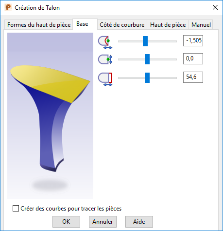 Courbure — Entrez une valeur ou faites glisser le curseur pour définir la courbure sur l'avant de la base du talon.