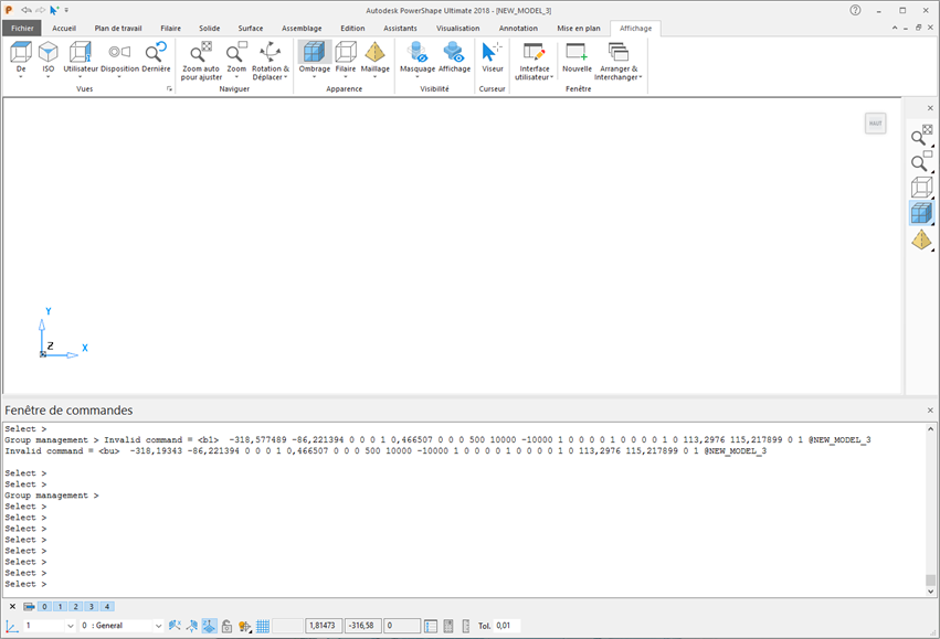 Utilisez la fenêtre de commande pour saisir directement les commandes.