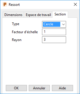 Utilisez cette boite de dialogue pour spécifier les détails de section pour un ressort solide ou surfacique primitif.