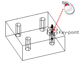 Cet exemple démontre l'insertion d'un composant 'écrou' axial en tant qu'esclave, dans un trou sur le composant maître ci-dessous :