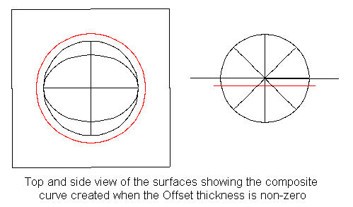 Quand vous cliquez sur OK, le programme calcule où les surfaces se croisent si elles sont décalées par l'épaisseur et crée des courbes à l'intersection