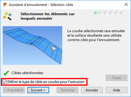 La page Sélection cible de l'assistant d'enroulement s'affiche.
