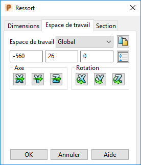 Utilisez cette page de la boite de dialogue pour spécifier les détails de l'espace de travail du ressort.