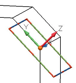 La direction de l'axe X est changée afin qu'elle se trouve sur la face inclinée.