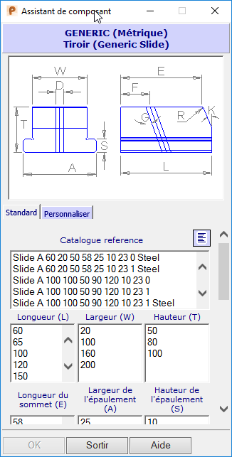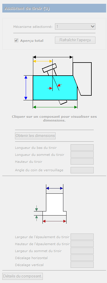 Vous pouvez accéder à d'autres paramètres du tiroir en cliquant sur le bouton Détails de composant pour afficher la boite de dialogue du composant.