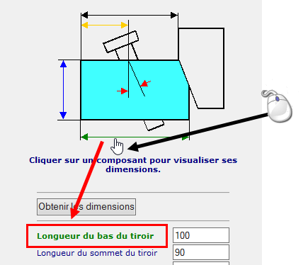 Si vous survolez, avec le curseur, une des dimensions sur l'image, le texte correspondant à cette dimension est mis en évidence.