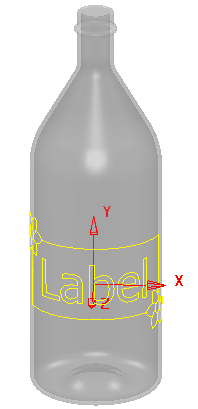 L'exemple ci-dessous utilise la projection cylindrique et le plan de travail actif se trouve se trouve sur la surface de la bouteille.