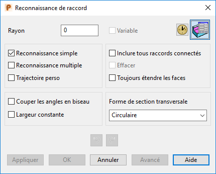 - Reconnaissance simple pour utiliser le curseur pour reconnaître les raccords (par défaut).