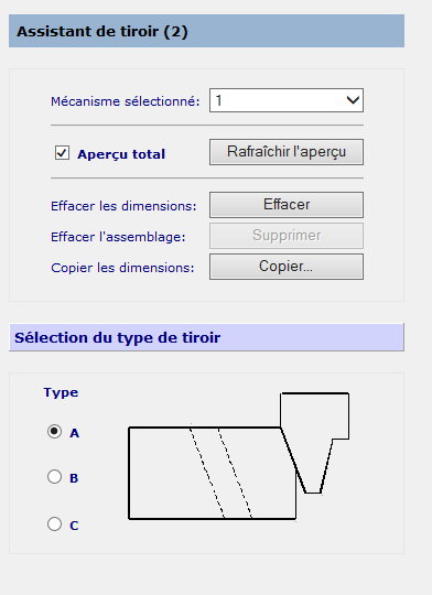 Cette page vous permet de sélectionner le type de tiroir à créer.