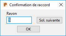 - Utilisez la boite de dialogue Confirmer le raccord pour spécifier le rayon de raccord :
