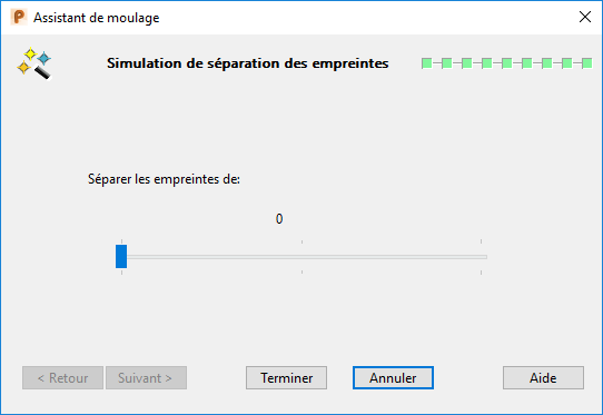 La page Simulation de séparation des empreintes afficher le modèle dans le mode d'ombrage actuel, au lieu qu'il soit en mode filaire.