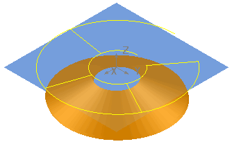 L'image ci-dessous montre un cône primitif positionné proche de la surface conique d'origine de l'exemple de la bouteille :