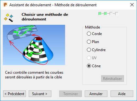 L'option de méthode d'enroulement conique est automatiquement sélectionnée :