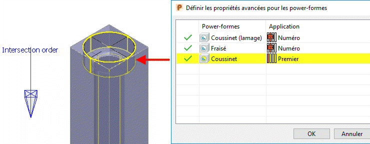 Utilisez la boite de dialogue Définir les propriétés avancées pour les power-formes pour changer les règles d'intersection associées à la power-forme.
