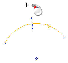 A travers — Spécifie un point à travers lequel l'arc doit passer. L'arc est édité en accord avec le point choisi, ceci est montré ci-dessous.