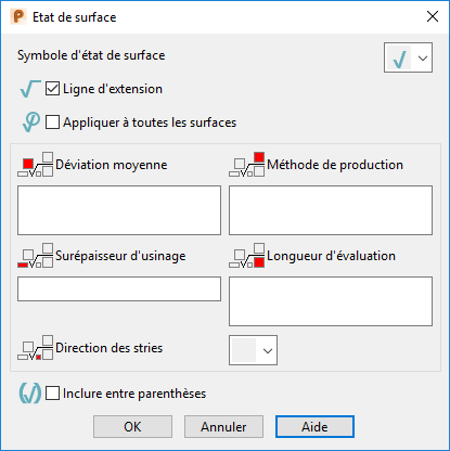 Complétez les réglages suivants pour spécifier l'état de surface :