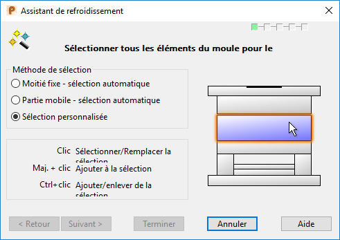 L'image dans l'assistant change quand vous cliquez sur une méthode de sélection différente. Cela montre quels composants seront sélectionnés.