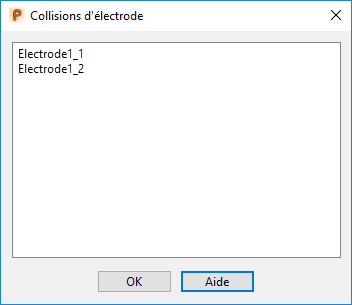 Remarque : Si aucune collision n'est détectée, alors aucune électrode n'est listée dans la boite de dialogue.