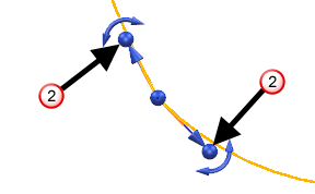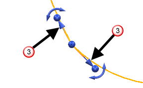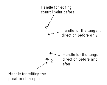 La moitié la plus proche du point de contrôle modifie seulement la direction de tangente avant (ou après) le point, alors que l'autre moitié modifie la direction avant et après le point. Quand ces poignées sont glissées, la magnitude reste constante.