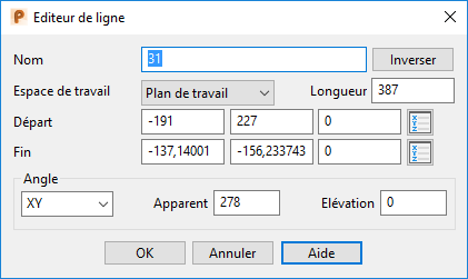 Inverser — Cliquez sur ce bouton pour inverser la ligne de façon à ce que les coordonnées de départ deviennent les coordonnées de fin et vice versa.