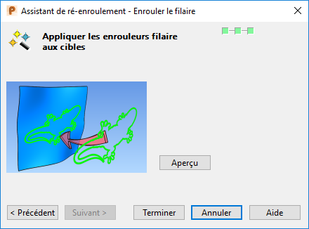- Si vous ré-enroulez des éléments filaires, utilisez cette page pour appliquer l'enrouleur sur l'élément cible :