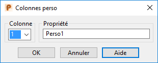 - Cliquez sur OK pour créer le titre de colonne et fermer la boite de dialogue. Le nouveau titre de la colonne est affiché dans la liste des colonnes perso qui peut être sélectionné pour la boite de dialogue.