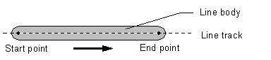 dessine des extrémités arrondies sur les lignes sélectionnées. Toutes les lignes avec extrémités arrondies sont justifiées au centre. Leurs extrémités sont à l'intérieur du rayon de bout, comme montré ci-dessous.
