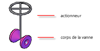 Vous pouvez affecter des actionneurs à une vanne dans les spécifications des tuyauteries, dans le catalogue ou dans le modèle 3D.