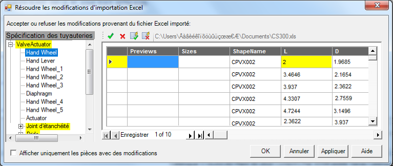 La boîte de dialogue Résoudre les modifications d'importation Excel s'affiche.