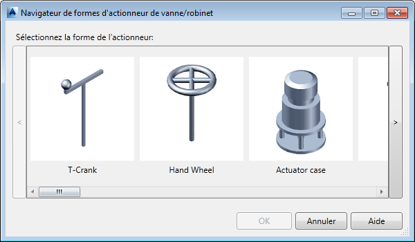 Boîte de dialogue Navigateur de formes d'actionneur de vanne/robinet