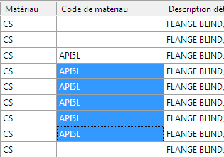 - Dans le tableau, sélectionnez une cellule et entrez une valeur. Par exemple, indiquez API5L dans la colonne Code de matériau pour 2".