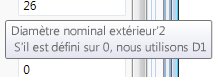 Maintenez le bouton de la souris au-dessus d'une zone de diamètre nominal pour afficher des informations importantes relatives à la valeur du paramètre. Certains paramètres permettent la saisie de valeurs spéciales telles que 0 pour spécifier une valeur par défaut ou un indicateur pour dessiner un collier.