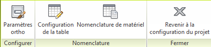 La configuration d'une nomenclature de matériel ortho est semblable à celle des nomenclatures de matériel isométriques pour les colonnes de la table et le regroupement. A l'instar de la nomenclature de matériel iso, la configuration des nomenclatures peut être enregistrée avec le cartouche.