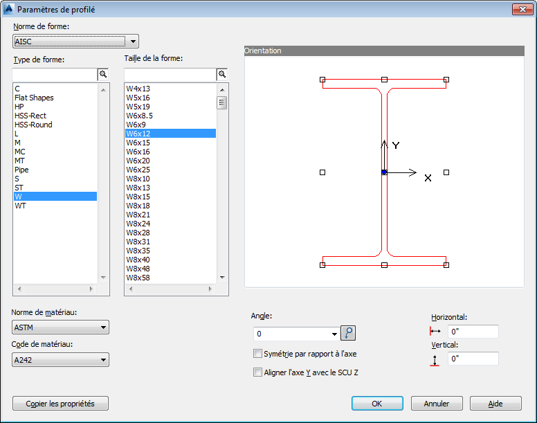Spécifie les paramètres par défaut pour la création des profilés structurels.