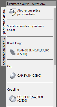 Ne pas utiliser la palette d'outils dynamique. Vous pouvez créer et personnaliser une palette d'outils de composants de tuyauterie statique à l'aide du Visualiseur de la spécification des tuyauteries. Ce comportement est compatible avec AutoCAD Plant 3D 2011.