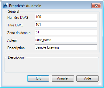 - Sous Description, entrez une description (p. ex. Le projet auquel ce dessin appartient).