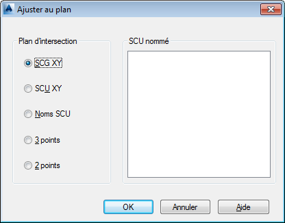 Indique d'utiliser comme plan de coupe le plan XY du système de coordonnées utilisateur nommé défini et enregistré dans AutoCAD.