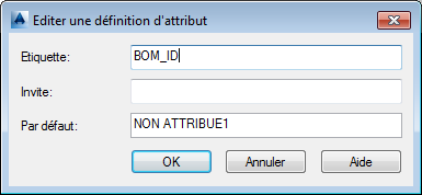 - Dans l'éditeur de blocs, cliquez deux fois sur la définition d'attribut pour afficher la boîte de dialogue Editer une définition d'attribut.