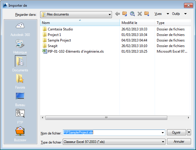 Boîte de dialogue Importer de