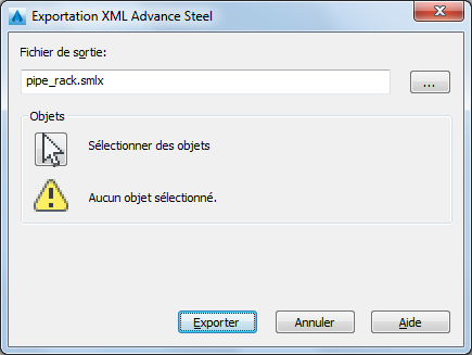 S'affiche lorsqu'aucun objet de structure n'a été défini pour l'exportation.